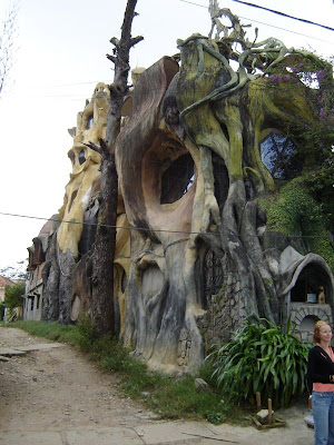 Dasar wisma dibangun menyerupai pohon raksasa. Dibangun pada tahun 1990 oleh seorang wanita bernama Dang Viet Nga (putri mantan presiden Vietnam), The Crazy House mulai menarik perhatian. Dia melihat kesempatan, dan membuka rumah untuk umum, yang akan dengan senang walaupun membayar biaya yang realtif kecil untuk menonton di rumah patung dan kolam renang dan kamar berbentuk aneh.